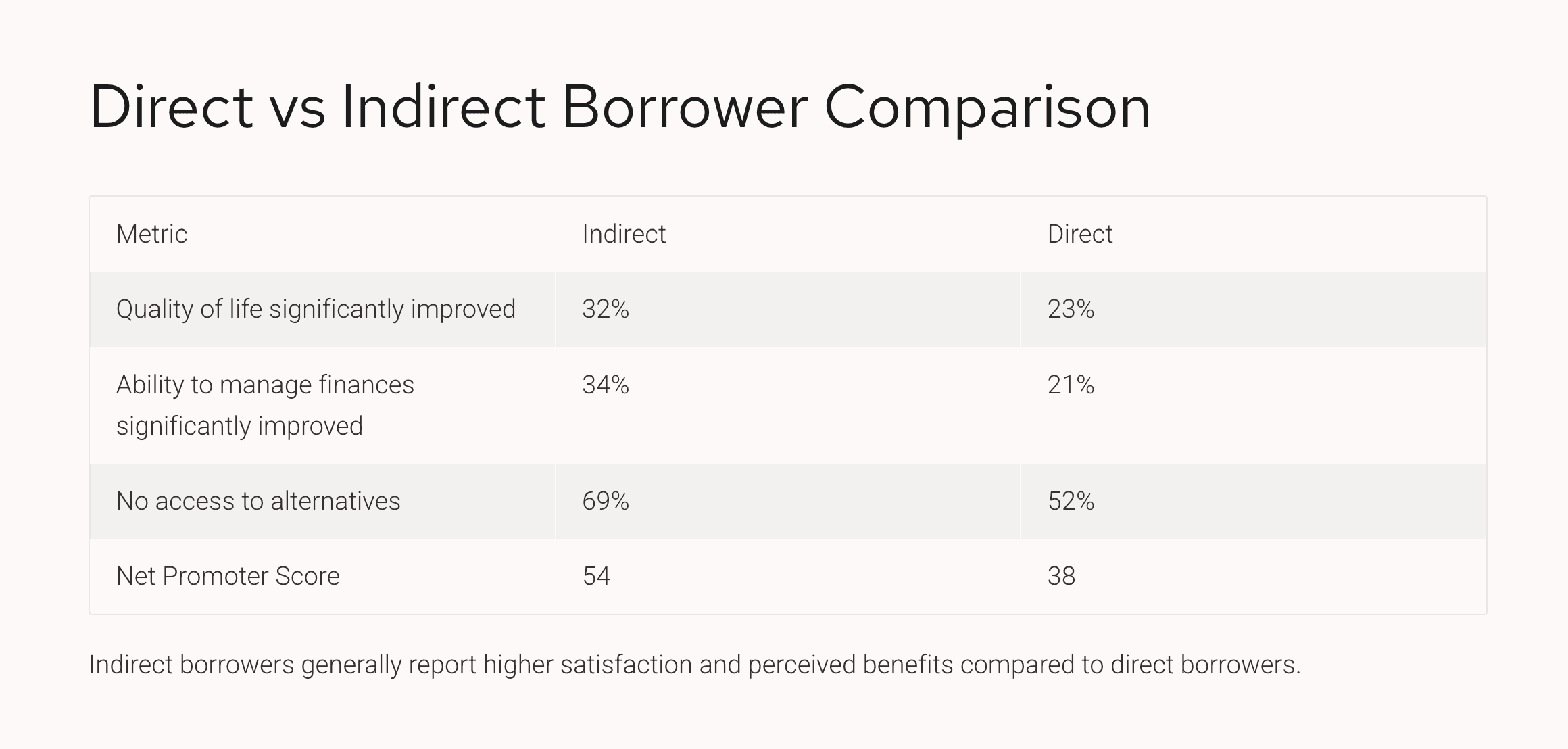Borrowers report high satisfaction, as reflected in a Net Promoter Score of 45.
